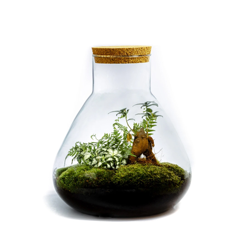 Maak kennis met één van onze bestsellers: de Erlenmeyer. Deze gesloten planten terrarium Erlenmeyer Medium – Botanisch doet door zijn karakteristieke vorm denken aan laboratoriumglaswerk. Binnenin bevindt zich jouw eigen tropische minituintje. Wat is de natuur toch een geweldige sfeermaker!